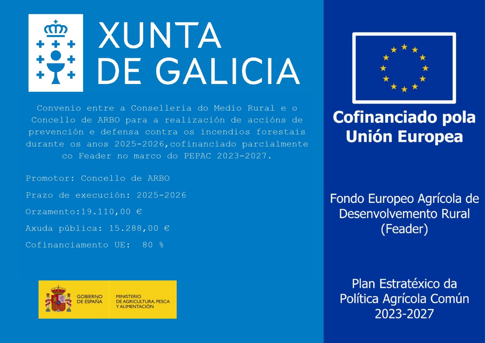 O Concello de Arbo, recibe unha subvención para a redacción do “PROXECTO DE MELLORA DA MOBILIDADE PEONIL NA GRANXA-ARBO” tras concesión de subvención pola Deputación de Pontevedra ao abeiro do Plan Máis Provincia 2025 – Liña 4.